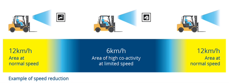 - Blaxtair Zonificación permite personalizar la velocidad de las carretillas elevadoras según las especificidades de cada zona de trabajo. Esta flexibilidad permite que la solución se adapte a los requisitos únicos de cada sitio, garantizando una seguridad y productividad óptimas.