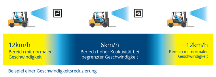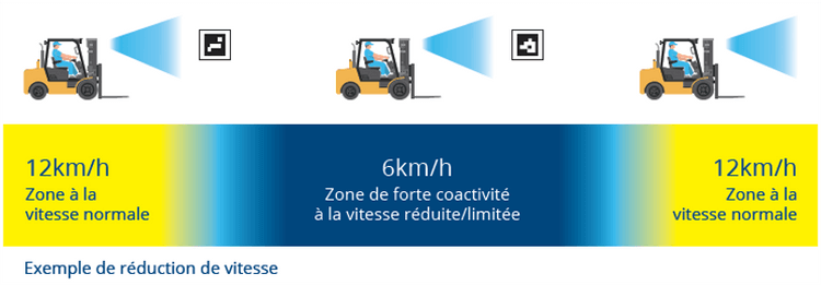 - Al reducir automáticamente la velocidad de las carretillas elevadoras a una velocidad segura en zonas peligrosas, Blaxtair Zonificación reduce significativamente el riesgo de accidentes. Esta función es particularmente crucial en entornos donde la convivencia entre vehículos y peatones es alta.
